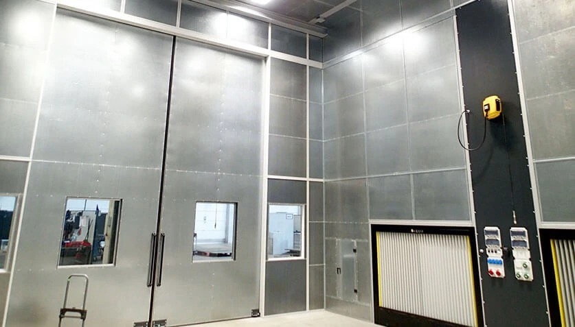 Depending on the application and design, the emissions are captured with integrated suction technology (rear extraction wall, ceiling extraction, extraction tables, etc.) and equipped with a ventilation or a high-quality lighting concept. Even individual constructions with movable side and roof elements for easy loading and unloading by crane or forklift can be realised.