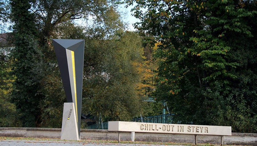 The artwork was equipped with the latest technology. State-of-the-art measurement technology measures several thousand air quality values every minute. They are analysed and condensed into a plausible value for the air quality - the Kappa Air Quality Index. It documents the air quality in Steyr Wehrgraben. The high air quality at this location is the reference value for the air quality index developed by Kappa for industrial workplaces.