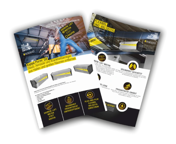 Saubere Raum- und Hallenluft steigert die Produktivität. Der Kappa Puron® DX hilft somit, Leistung zu fördern und Unfälle bzw. Arbeitsausfälle zu reduzieren.