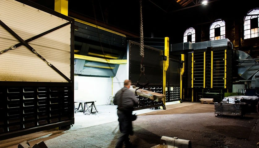 Depending on the application and design, the emissions are captured with integrated suction technology (rear extraction wall, ceiling extraction, extraction tables, etc.) and equipped with a ventilation or a high-quality lighting concept. Even individual constructions with movable side and roof elements for easy loading and unloading by crane or forklift can be realised.